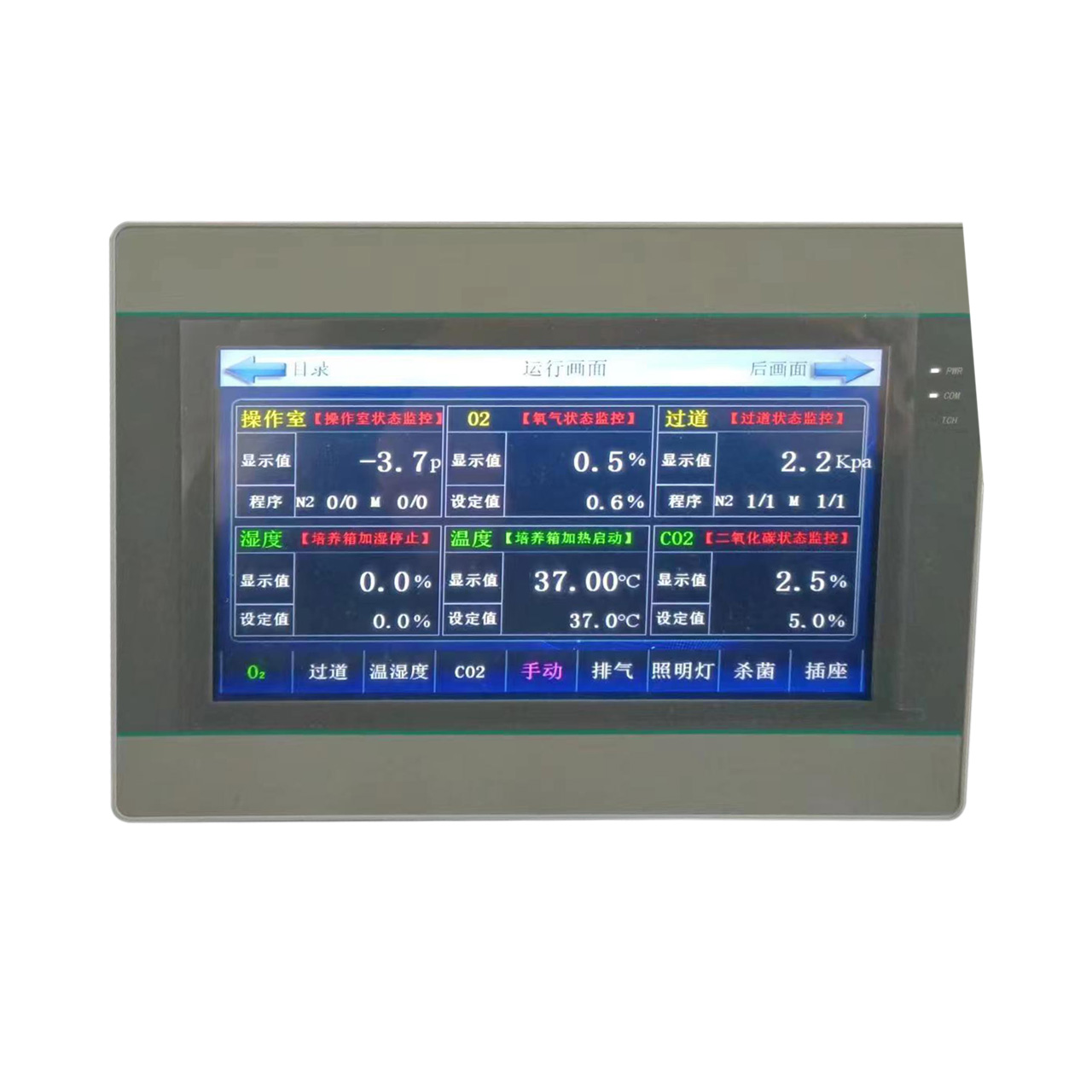 2. 采用PLC模塊控制系統(tǒng),溫度控制采用微電腦智能PID溫度控制模塊、能準(zhǔn)確反映及控制培養(yǎng)箱內(nèi)溫度,在同一個控制界面可監(jiān)控溫度值、濕度值、CO2濃度值、O2濃度值。