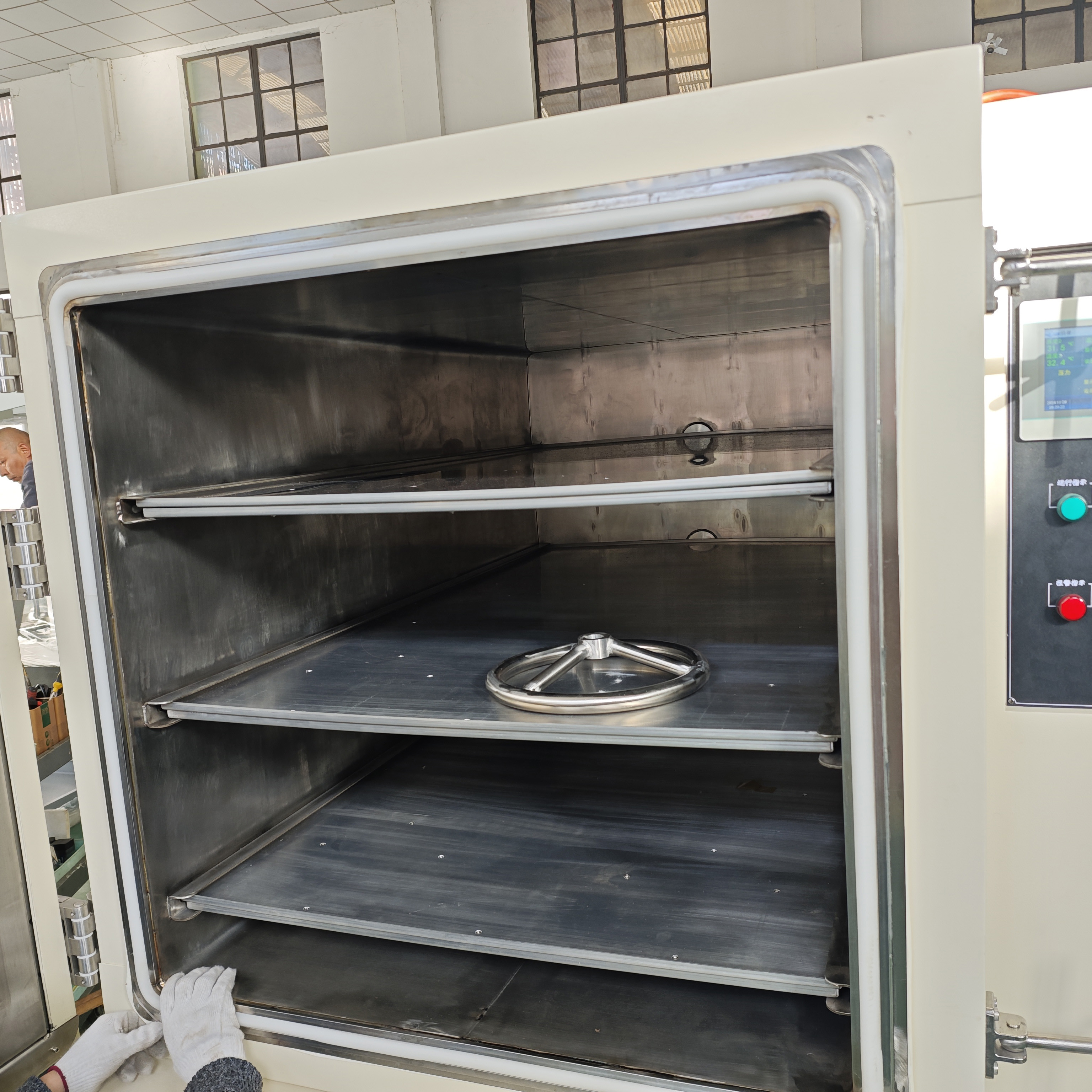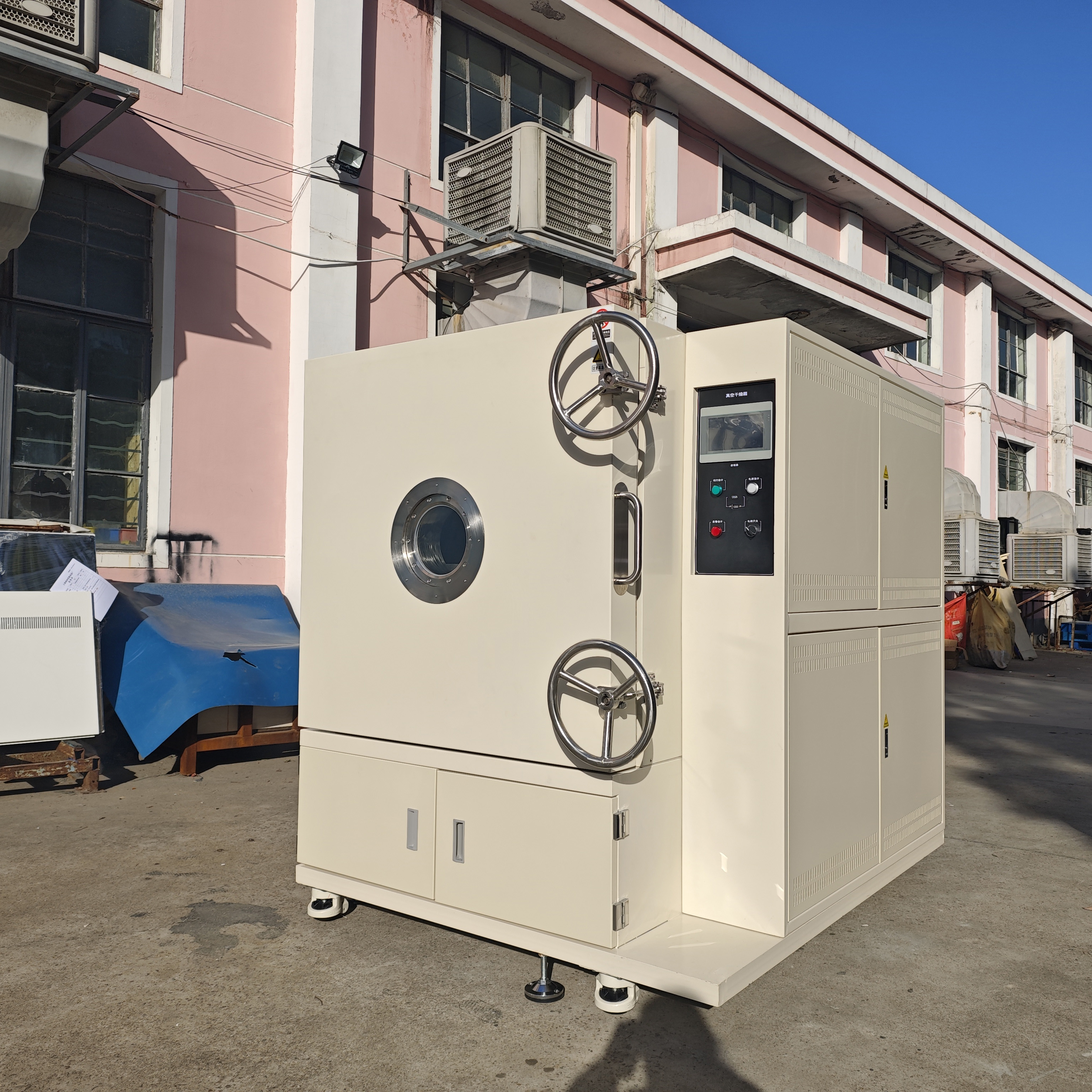 設(shè)備結(jié)構(gòu) | 立式結(jié)構(gòu),上部工作室,右側(cè)為控制系統(tǒng),下部為真空系統(tǒng)(真空泵放在下箱柜內(nèi),落地安裝) |